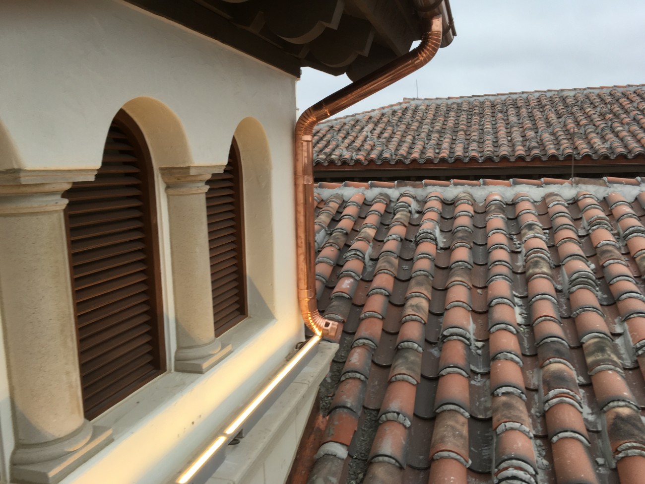 Products Used: Evergreen Slate, Ludowici Spanish Tile, Elevate Platinum EPDM system, custom copper